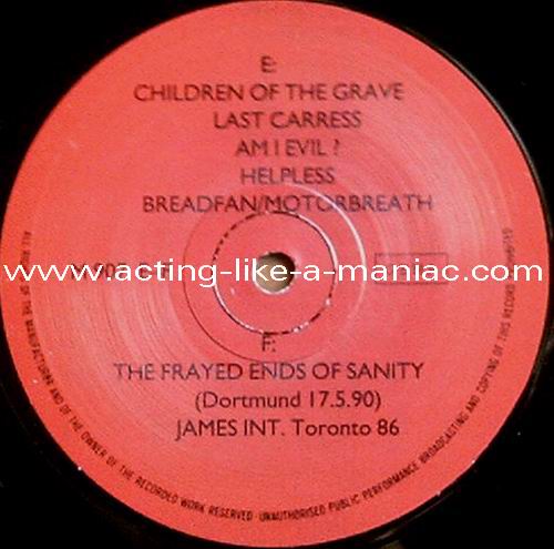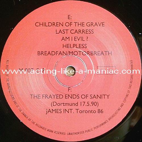 Type Of Vinyl: 3LP Box Country / Year: Germany/31/03/10 Company: None Source / Date: *Messehalle, Hannover, Germany, 19/05/90 **Westfalenhalle, Dortmund, Germany, 17/05/90 ***Toronto, Canada, 09/12/1986 (Interview) Matrix: M 907-A & M 907-B & M 907-C & M 907-D & M 907-E & M 907-F Track List: A. Intro*, Creeping Death*, For Whom The Bell Tolls*, Welcome Home (Sanitarium)*, Harvester Of Sorrow* B. No Remorse*, The Four Horsemen*, The Shortest Straw*, Bass Solo*, Whiplash* C. Fade To Black*, Seek And Destroy*, Blackened* D. One*, Master Of Puppets*, Guitar Solo*, Battery* E. Last Caress*, Am I Evil ?*, Helpless*, Breadfan*, Motorbreath* F. The Frayend Ends Of Sanity**, Interview James***