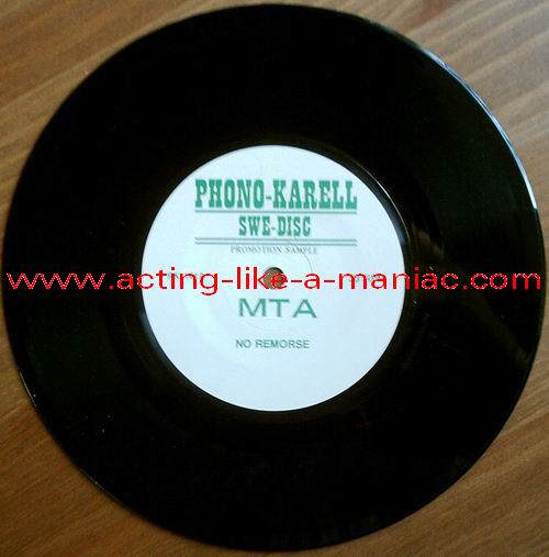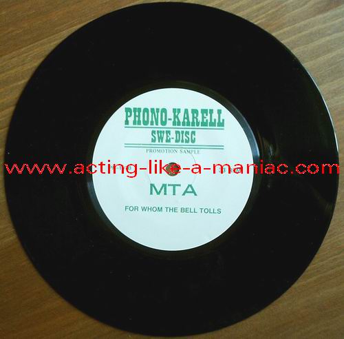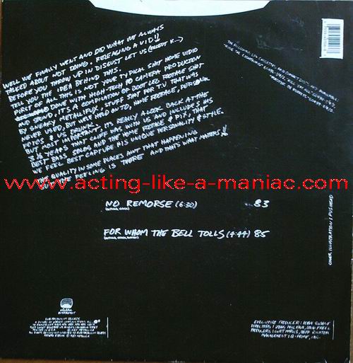 black vinyl with cut on the edge, scan from the collection of "Greg Dauny", many thanks Type Of Vinyl: 7" Single Country / Year: Sweden / 1989 Company: "Elektra/Asylum Records" Source / Date: Taken From The Official "Cliff 'Em All" Video Matrix: Track List: A. No Remorse B. For Whom The Bell Tolls