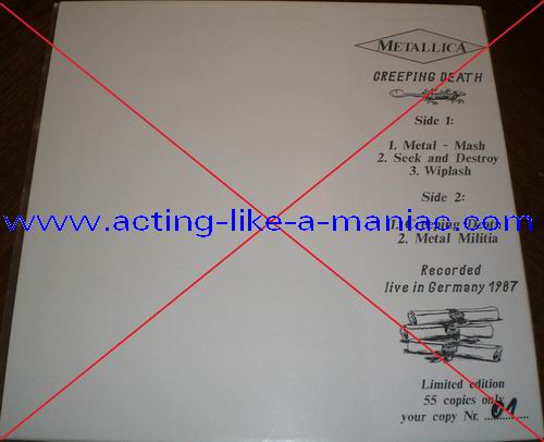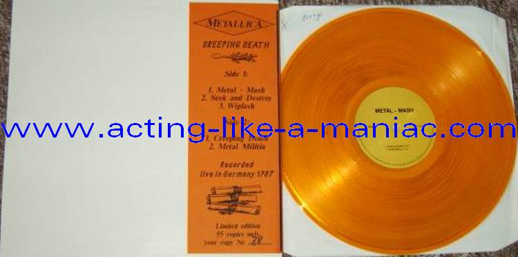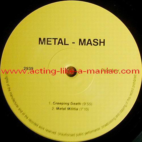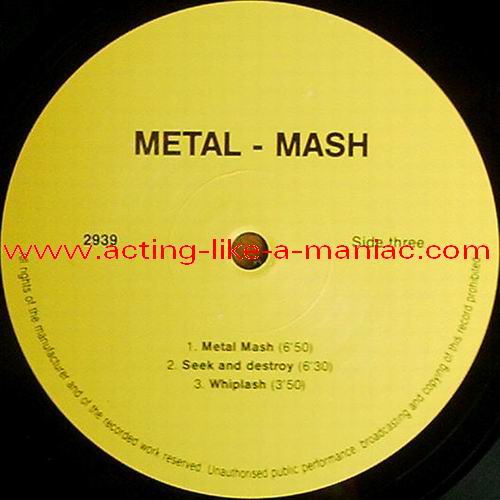 LABEL DETAILS; Type Of Vinyl: 1LP Country / Year: Germany/1992 Company: Metal Mash Source / Date: Mainz, Eltzer Hof, Germany, 01/12/84 Matrix: 2939-3 & 2939-4 Track List: A. The Call Of Ktulu, Seek And Destroy, Whiplash B. Creeping Death, Guitar Solo, Metal Militia