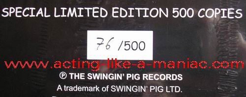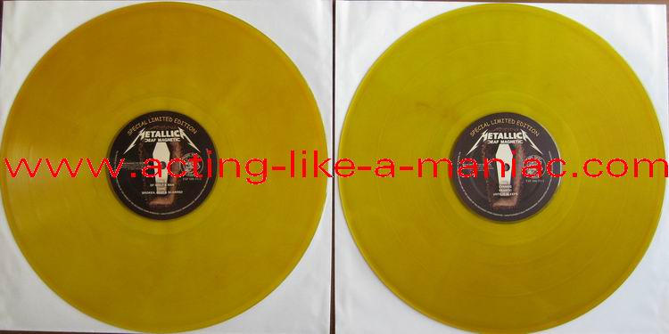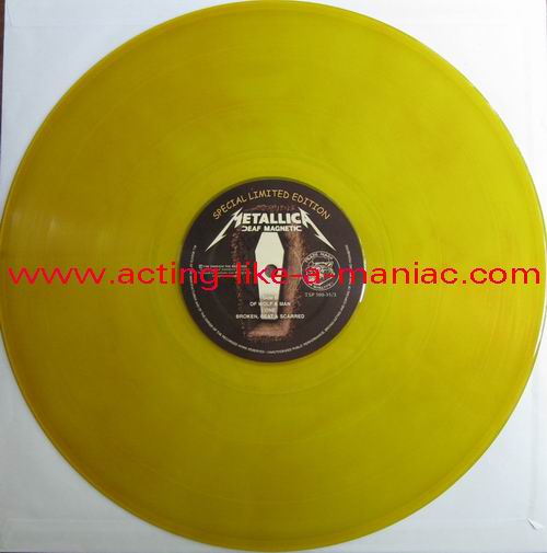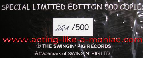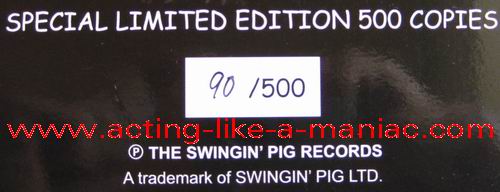 dark yellow vinyl; numbers 1/500 - 100/500 white (gray) marbled vinyl; numbers 101/500 - 200/500 green vinyl; numbers 201/500 - 300/500 dark blue vinyl; numbers 301/500 - 400/500 dark red vinyl; numbers 401/500 - 500/500