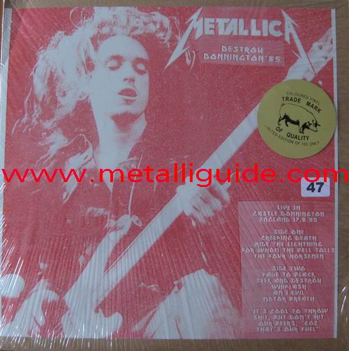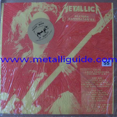 Type Of Vinyl: LP Country / Year: Ireland/01/01/2011 Company: None Source / Date: Donington Park, Donington, England, 17/08/1985 (Monsters Of Rock '85) Matrix: ACE 85 - AI & ACE 85 - BI Track List: A. Creeping Death, Ride The Lightning, For Whom The Bell Tolls, The Four Horsemen B. Fade To Black, Seek And Destroy, Whiplash, Am I Evil?, Motorbreath