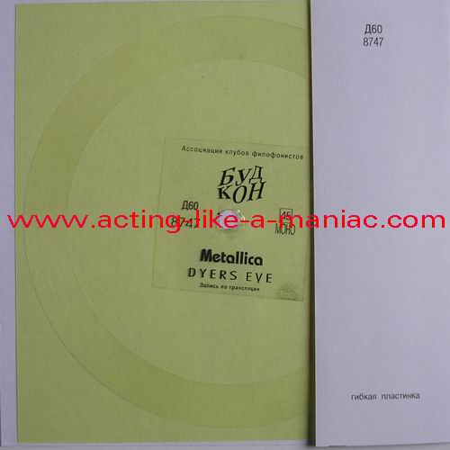 Type Of Vinyl: 6" Flexi Disc Country / Year: Russia/1991-2004 Company: Budkon Matrix: None Cat Number: D60 8747