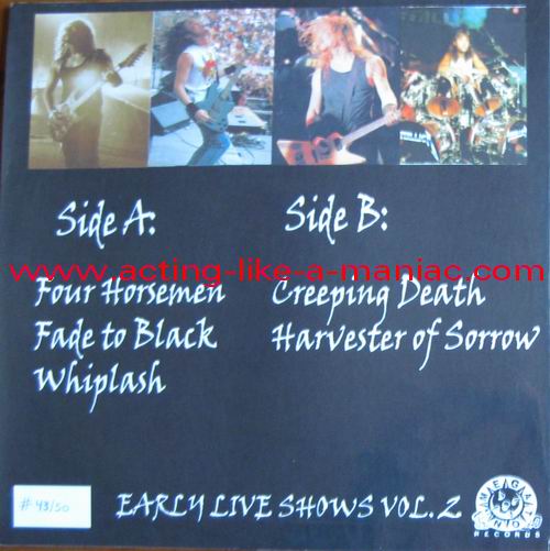Type Of Vinyl: 1lp Country / Year: Argentina/10/09 Company: Megaton Records Source / Date: ? Matrix: MEGATON #2 (only on a-side) Track List: A. Four Horsemen, Fade To Black, Whiplash B. Creeping Death, Harvester Of Sorrow