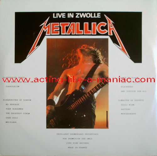 Type Of Vinyl: 2LP Country / Year: France/1990 Company: Fire Records Source / Date: Groenoordhal, Leiden, Holland, 20/05/90 Matrix: SHP NP 91 A 1 1 & SHN NP 91 B 1 2 & SHN NP 92-A 1 HP 1 & SHN NP 92-B 1 HP 1 Track List: A. Intro, Creeping Death, For Whom The Bell Tolls, Welcome Home (Sanitarium), Harvester Of Sorrow B. Harvester Of Sorrow, No Remorse, The Four Horsemen, The Shortest Straw, Whiplash, Fade To Black C. Seek And Destroy, Blackened, One D. Master Of Puppets, Guitar Solo, Battery, Breadfan, Motorbreath