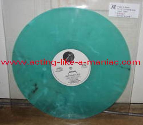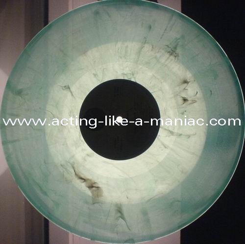 solid green marbled vinyl clear blue vinyl with different sticker ("load" sticker")