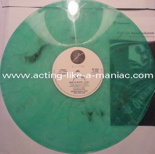 Notes: Most of the bootleg copies don't have a sticker, so the stickered bootleg versions is hard to find. Also the records have a different matrix. There is also a reissue of the white bootleg sticker: made in Sweden, in 2006 (approx. 30 copies made). Both versions play "Fade To Black" on both sides.