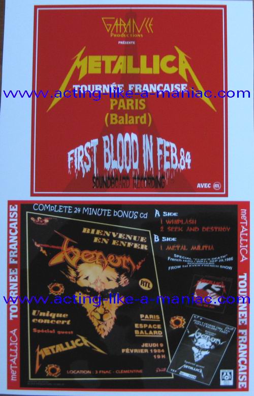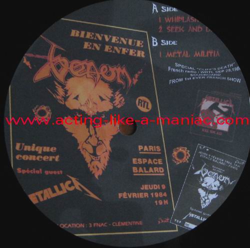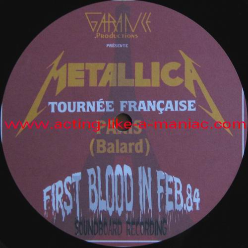 CD-R DETAILS; Type Of Vinyl: 10" Metal/Lacquer Plate Country / Year: USA/23/11/2009 Company: Black Production / 731508-10 Source / Date: Balard, Paris, France, 08/02/84 Matrix: no matrix at all Track List: A. Whiplash, Seek & Destroy B. Metal Militia