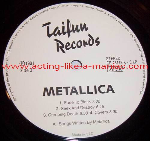 Type Of Vinyl: 2LP Country / Year: Germany?/2006? Company: Taifun Records? Source / Date: Frolundaborg, Gothenburg, Sweden, 13/02/87 Matrix: CR-28113X-A & CR-28113X-B & CR-28113X-C & CR-28113X-D Track List: A. Intro, Battery, Master Of Puppets, For Whom The Bell Tolls, Welcome Home (Sanitarium) B. Ride The Lightning, Bass Solo, Whiplash, The Thing That Should Not Be C. Fade To Black, Seek And Destroy, Creeping Death D. The Four Horsemen, Guitar Solo, Am I Evil ?, Damage Inc., Fight Fire With Fire