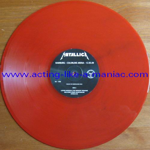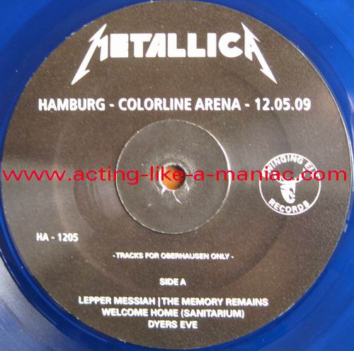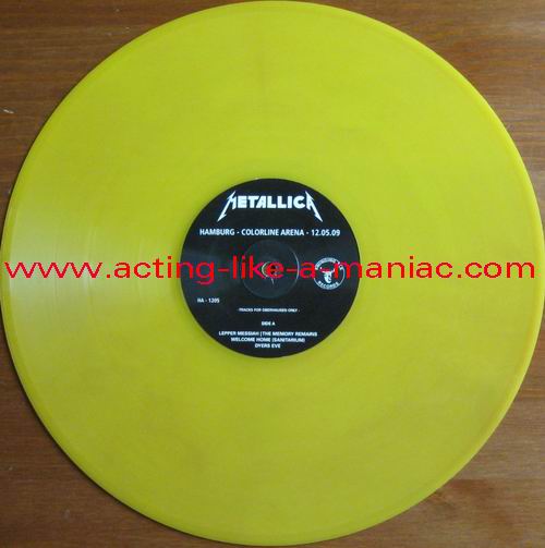 lime yellow/brown marbled Type Of Vinyl: LP Country / Year: Coloured Vinyl; Europe/Germany?/01/11/2009 Black Vinyl; Europe/Germany?/23/11/2009 Company: The Swinging Elk Records Source / Date: Colorline Arena, Hamburg, Germany, 12.05.2009 Matrix: No Matrix At All Track List: A. Leper Messiah, The Memory Remains, Welcome Home (Sanitarium), Dyers Eve B. The Judas Kiss, Killing Time, The Prince