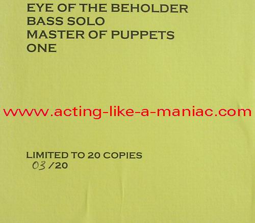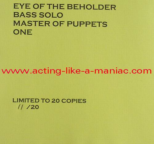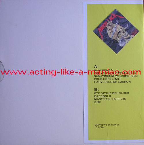 Type Of Vinyl: 1LP Country / Year: England/11/2008 Company: None Source / Date: Uniondale, Nassau Coliseum, USA, 08/03/89 Matrix: "After Hours" labels: METAL 01 A L 33261 & METAL 01 B L 33261 "Chain Records" labels: A. Blackened, For Whom The Bell Tolls, Welcome Home (Sanitarium), The Four Horsemen, Harvester Of Sorrow B. Eye Of The Beholder, Bass Solo, Master Of Puppets, One
