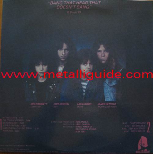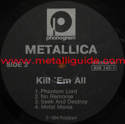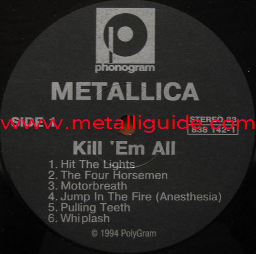 Type Of Vinyl: 1LP Country / Year: Russia/1994 Company: "Polygram/Phonogram/MFN" Matrix: 838 142-1/1 & 838 142-1/2 Track List: A. Hit The Lights, The Four Horsemen, Motorbreath, Jump In The Fire, (Anesthesia) Pulling Teeth, Whiplash B. Phantom Lord, No Remorse, Seek & Destroy, Metal Militia