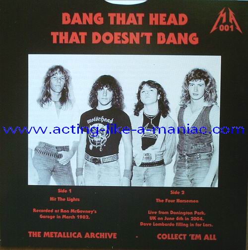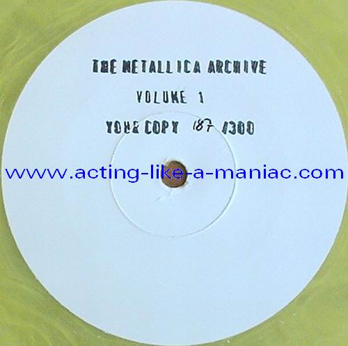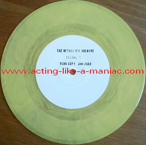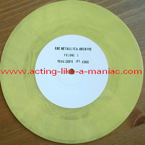 purple marbled vinyl - unnumbered (test press) Type Of Vinyl: 7" Single Country / Year: Norway & USA / 04/2007 (Cover Made In Europe) Company: MA 001/The Metallica Archive Source / Date: *Demos 03/1982 (Practise Session, Recorded In Ron's Garage) **Download Donington, Castle Donington, England, 06/06/04 Matrix: Ma 001 A & MA 001 B. Track List: A. Hit The Lights* B. The Four Horsemen**