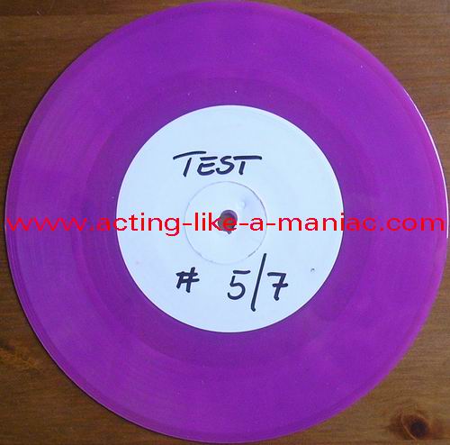 Notes: There are 300 copies in total. 150 copies were pressed on blue vinyl, 110 copies on red vinyl & 40 copies on yellow vinyl. Also there are a few testpressings (no cover) & misspressings available. A few testpressings are numbered (number #1/7 up to 7/7available), but there are also a few unnumbered versions (3-4 copies). If you have a misspressed copy, let me know: SAM. Numbers: red marbled: numbers #1/300 - #110/300 yellow marbled: numbers #111/300 - #150/300 blue marbled: numbers #151/300 - #300/300