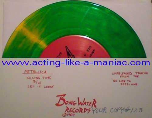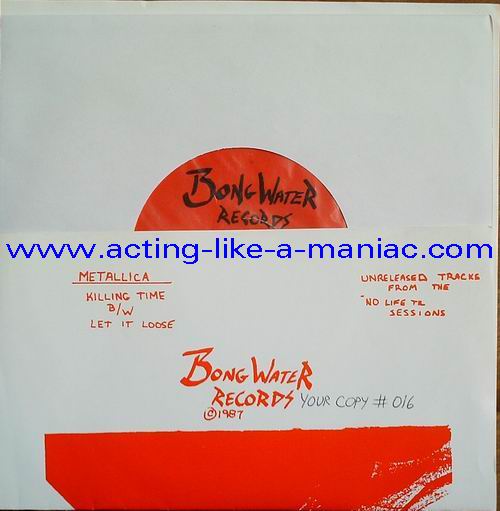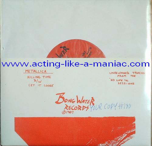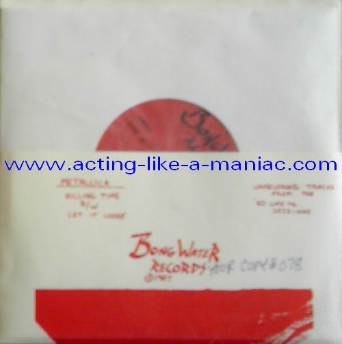 b/w insert, unnumbered Type Of Vinyl: 7" Single Country / Year: USA/1997? Company: Bong Water Records Source / Date: Demos 03/1982 (Practise Session, Recorded In Ron's Garage) Matrix: 1982 METAL DEMO SIDE 1 & 1982 METAL DEMO SIDE 2 Track List: A. Killing Time B. Let It Loose