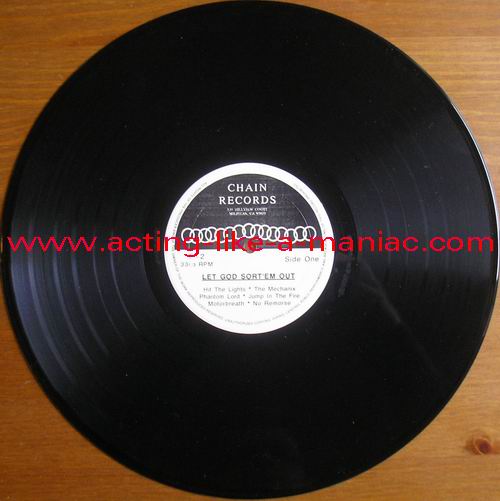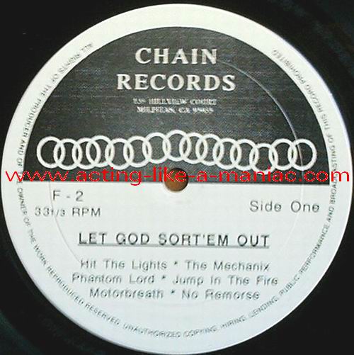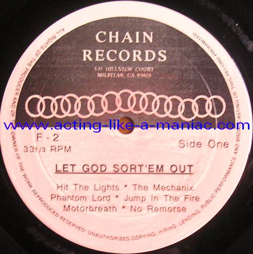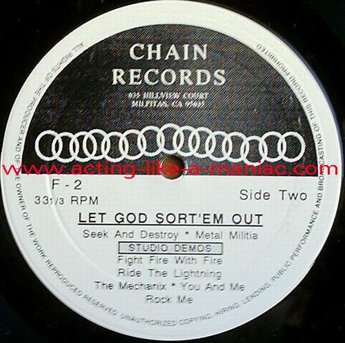LABEL DETAILS; original with red "after hours" labels reissue with white "chain records" labels reissue with pink "chain records" labels Type Of Vinyl: LP Country / Year: USA/1989 Company: After Hours Records Source / Date: *The Stone, San Francisco, USA, 18/0982 **"Ride The Lightning" Demos 09/1983 Matrix: Original (red "after hours" labels): METAL 03A L-34719 & METAL 03B L-34719X Reissue (white "chain records" labels):