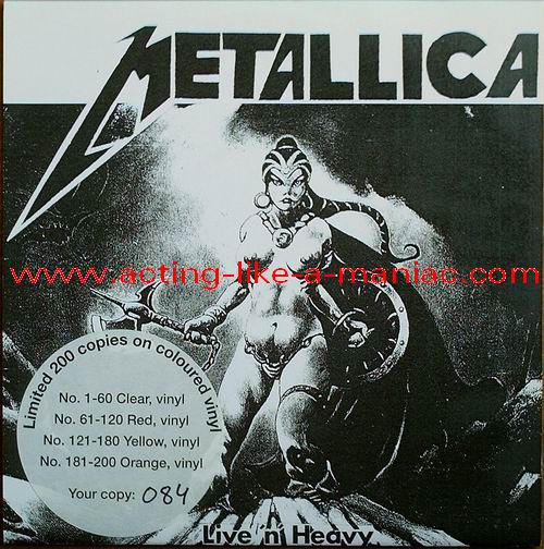 RECORD DETAILS (Misspressed/Odd/Overstock Versions); clear vinyl, no sticker & unnumbered, overstock (my copy) Type Of Vinyl: 7" Single Country / Year: Sweden & Norway/1999 Company: None Source / Date: Forest National, Brussels, Belgium, 29/10/88 Matrix: Metallica In Brüssel 1988-10-29 A & Metallica In Brüssel 1988-10-29 B Track List: A. The Four Horsemen B. Harvester Of Sorrow