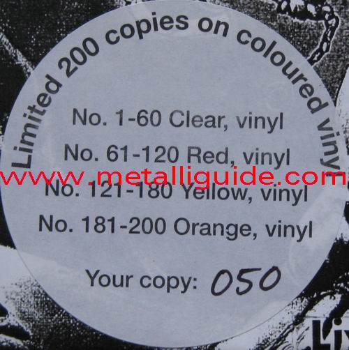 Notes: There are also a few misspressed coloured versions available. I also got a clear copy which is unnumbered (overstock).