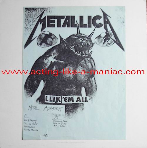 LABEL DETAILS; Type Of Vinyl: LP Country / Year: USA/1989? Company: None Source / Date: *Ijsselhalll, Zwolle, Holland, 11/02/84 **Live at Donington Park, Donington, England, 17/08/85 Matrix: 7507-C & 7507-D Track List: A. Seek And Destroy*, Bass Solo*, Whiplash*, Metal Militia* B. Intro**, Creeping Death**, Ride The Lightning**, Fade To Black**, Am I Evil ?**