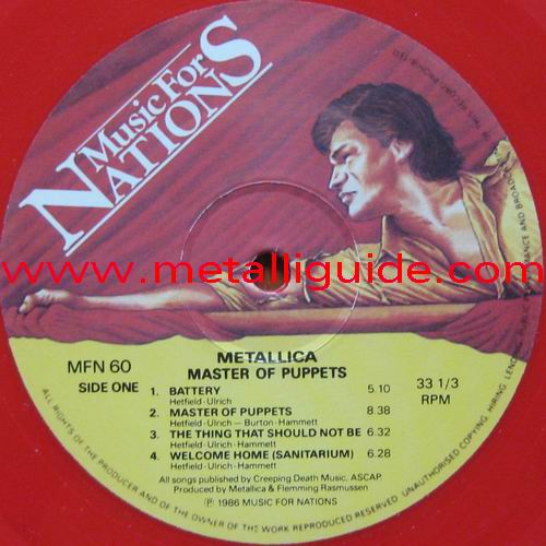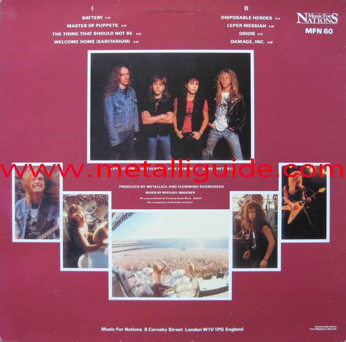 Type Of Vinyl: 1LP Country / Year: Pink Vinyls; Germany/07/2007 Blue Vinyl; Germany/early/2007 Green & Red Vinyls; Germany/09/2008 Company: "MFN" Matrix: MFN 60 P - A Track List: A. Battery, Master Of Puppets, The Thing That Should Not Be, Welcome Home (Sanitarium) B. Disposable Heroes, Leper Messiah, Orion, Damage, Inc.