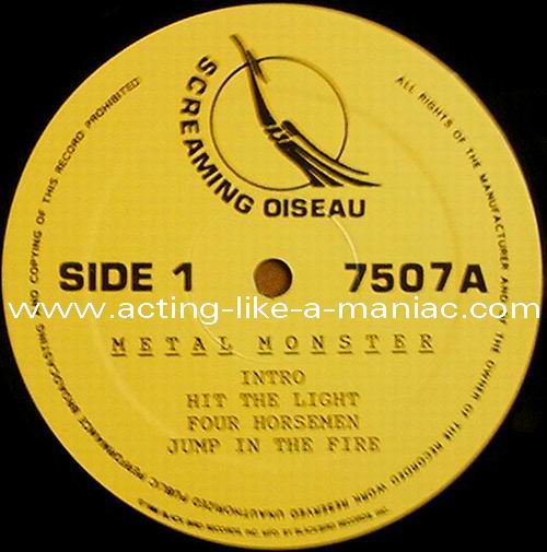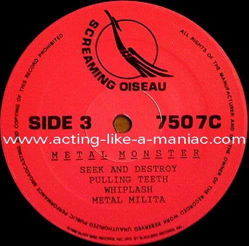 LABEL DETAILS; first record second record Type Of Vinyl: 1LP Country / Year: USA/late 80's/early 90's Company: None Source / Date: Ijsselhalll, Zwolle, Holland, 11/02/84 Matrix: 7507-A & 7507-B or 7507-C & 7507-D Track List: A. Intro, The Four Horsemen, Jump In The Fire B. Phantom Lord, Ride The Lightning, Guitar Solo, Motorbreath or C. Seek And Destroy*, Bass Solo*, Whiplash*, Metal Militia* D. Intro**, Creeping Death**, Ride The Lightning**, Fade To Black**, Am I Evil ?**