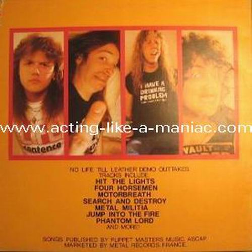 Type Of Vinyl: LP Country / Year: USA/1986 Company: Puppet Masters Music. ASCAP. / Metal Records Source / Date: *"No Life 'Til Leather" Demos 07/82 **"Whiplash/No Remorse" Demos, 16/03/83 ***Jag Panzer, Studio Outtake, 1983 (Jag Panzer, Tyrants (Mausoleum) 1983) ****Witchkiller, Studio Outtakes Matrix: SE 3905-A & SE 3905-B Track List: A. Hit The Lights*, The Four Horsemen*, Motorbreath*, Seek And Destroy*, Metal Militia*, Jump In The Fire*, Phantom Lord* B. Whiplash**, No Remorse**, Battle Zone***, Day Of Saxons****, Riders Of Doom****, Day Of Saxons****