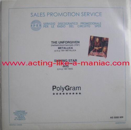 Type Of Vinyl: 7" Single Country / Year: Italy/1991? Company: "PolyGram"/SPER Source / Date: Taken From The Official Albums of Metallica & INXS Matrix: 50 00909 1 520 & 5 000909 2 520 Track List: A. Shining Star (INXS) B. The Unforgiven (Metallica)