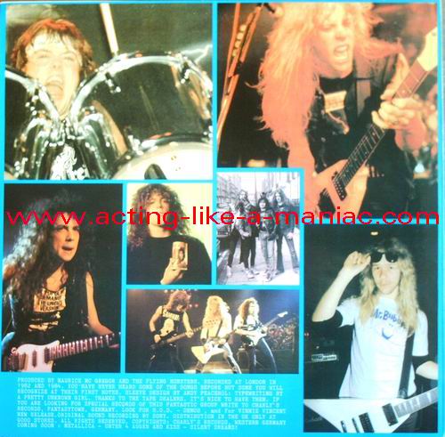 "skyline" labels; Type Of Vinyl: 2LP Country / Year: Germany/1988 Company: Charly's Records Source / Date: *Lyceum, London, England, 20/12/84 **Wolfgang's, San Francisco, USA, 29/11/82 Matrix: MET - A & MET - B & MET - C & MET - D Track List: A. Phantom Lord*, The Four Horsemen*, Bass Solo*, For Whom The Bell Tolls*, No Remorse* B. Seek & Destroy*, Whiplash*, Creeping Death*, Guitar Solo*, Metal Militia* C. Hit The Lights**, The Mechanix**, Phantom Lord**, Jump In The Fire**, Motorbreath**, No Remorse** D. Seek And Destroy**, Whiplash**, Am I Evil ?**, Metal Militia**