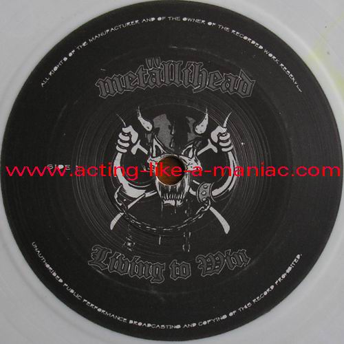 clear/white vinyl, scan from the collection of "AttarinWhiteEagle", many thanks Type Of Vinyl: 7" Single Country / Year: Europe/22/08/2008 Company: None Source / Date: *Austria, 15/06/06 ** Matrix: METHEAD I AI & METHEAD I BI Track List: A. Damage Case (Lemmy & Metallica)* B. Whiplash (Motorhead)**, Too Late Too Late (Metallica)**