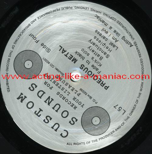 • reissue on black vinyl or translucent vinyl with green/brown "custom sounds" labels • reissue on black vinyl or translucent vinyl with green/silver "custom sounds" labels