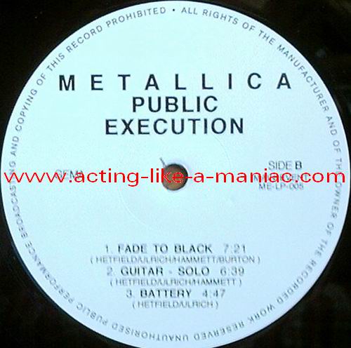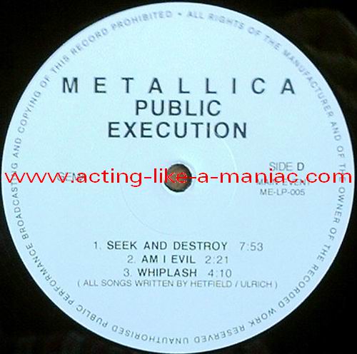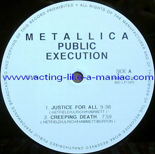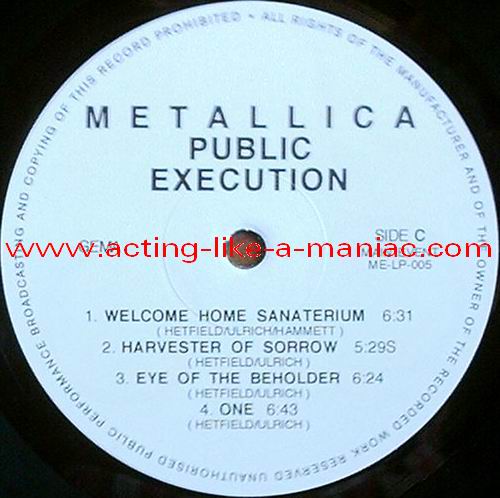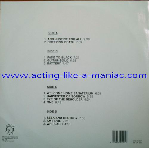 Type Of Vinyl: 2LP Country / Year: Luxembourg/1992 Company: Main Event Source / Date: Providence, Civic Center, USA, 23/02/89 Matrix: ME-005 A G.P. & ME-005 B G.P. & ME-005 C G.P. & ME-005 D G.P. Track List: A. And Justice For All, Creeping Death B. Fade To Black, Guitar Solo, Battery C. Welcome Home (Sanitarium), Harvester Of Sorrow, Eye Of The Beholder, One D. Seek And Destroy, Am I Evil ?, Whiplash