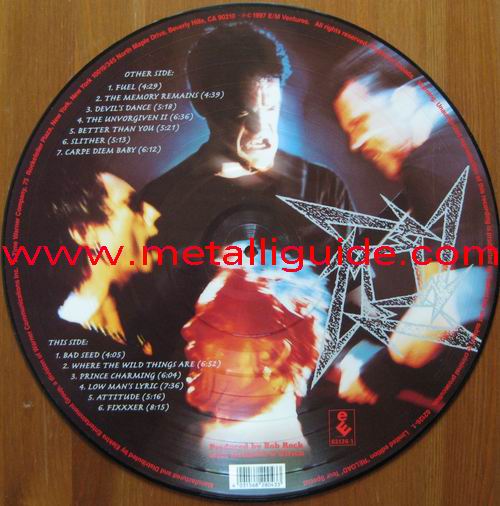 Type Of Vinyl: LP (Picture Disc) Country / Year: Germany/1997 Company: "Elektra" Matrix: MRE - 62126 - 1 A & MRE - 62126 - 1 B Track List: A. Fuel, The Memory Remains, Devil's Dance, The Unforgiven II, Better Than You, Slither, Carpe Diem B. Bad Seed, Where The Wild Things Are, Prince Charming, Low Man's Lyric, Attitude, Fixxxer
