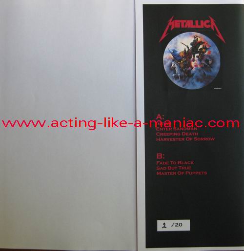 neutral white & beige labels Type Of Vinyl: 1LP Country / Year: England / 06/07/2009 Company: None Source / Date: Donington, Donington Park, England, 17/08/91 Matrix: MIDD . I . A1 & MIDD . I . B1 Track List: A. Intro, Enter Sandman, Creeping Death, Harvester Of Sorrow B. Fade To Black, Sad But True, Master Of Puppets