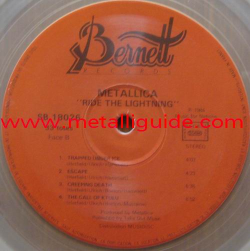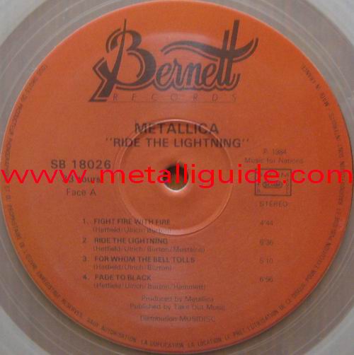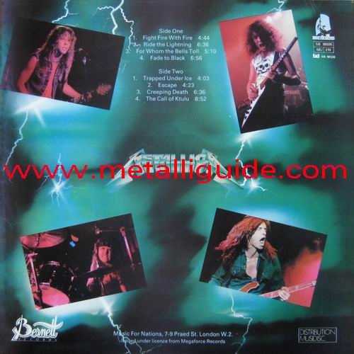 MISSPRESSED/ODD VERSIONS; clear blue marbled, scan taken taken from ebay.com Type Of Vinyl: 1LP Country / Year: Germany / 2005-09 Clear, Clear/Blue, Clear/Green & Pink; Germany / 02/2005 Dark Blue & Dark Green; Germany / 10/2005 Pale Blue; Germany / early 2006 White; Germany / mid/late 2006 Orange; Germany / 09/2007 Yellow; Germany / 02/2008 Yellow; Germany / 2009 Company: "Bernett/MFN" Matrix: MFN - 27 P Track List: A. Fight Fire With Fire, Ride The Lightning, For Whom The Bell Tolls, Fade To Black B. Trapped Under Ice, Escape, Creeping Death, The Call Of Ktulu