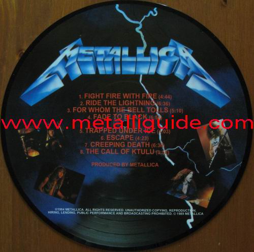 the reissue doesn't have the #cat number on front & back Type Of Vinyl: LP (Picture Disc) Country / Year: Germany/? Company: "Phonogram/Vertigo" Matrix: MFN - 27P A & MFN 27P B Track List: A. Fight Fire With Fire, Ride The Lightning, For Whom The Bell Tolls, Fade To Black B. Trapped Under Ice, Escape, Creeping Death, The Call Of Ktulu