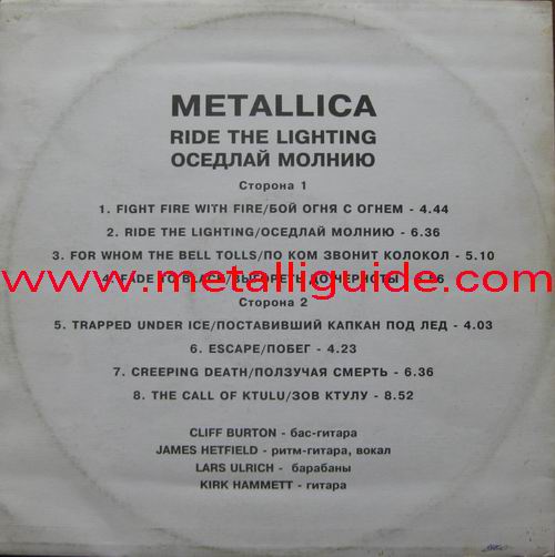 Notes: With photocopied cover (no inner sleeve). The cover is "fuzzy", also says "Ride The LIGHTING" on back. Back cover has tracklist in English & Russian.