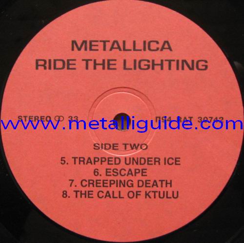 RECORD DETAILS; LABEL DETAILS; Type Of Vinyl: 1LP Country / Year: Russia/1994 Company: Rat Matrix: RAT 30742 - 1 & RAT 30742 - 2 Track List: A. Fight Fire With Fire, Ride The Lightning, For Whom The Bell Tolls, Fade To Black B. Trapped Under Ice, Escape, Creeping Death, The Call Of Ktulu