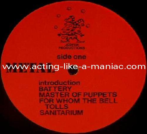 COLOUR DETAILS; translucent brown vinyl Type Of Vinyl: 1LP Country / Year: England / 06/07/2009 Company: None Source / Date: New York, Felt Forum, USA, 01/12/86 Matrix (red "jester / neutral red / beauty" labels): "FLT 12/86 A" Matrix (with "after hours" labels): "FLT 12/86 A" Matrix (with "chain rec" labels): " Track List: A. Intro, Battery, Master Of Puppets, For Whom The Bell Tolls, Welcome Home B. Ride The Lightning, Bass Solo, Whiplash, The Thing That Should Not Be