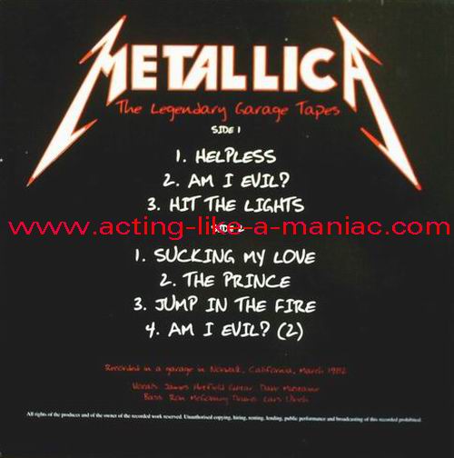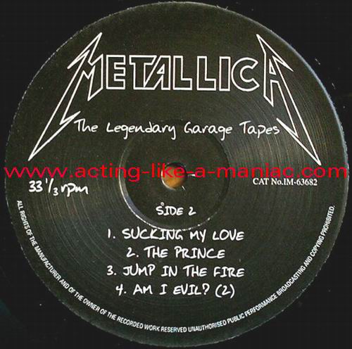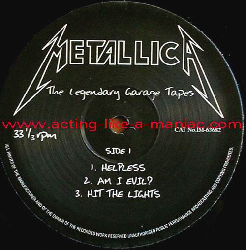RECORD DETAILS; LABEL DETAILS; DIFFERENCES; 1st version with white coloured cover inner 2nd version with gray coloured cover inner Type Of Vinyl: LP Country / Year: Europe/2005 Company: None Source / Date: Recorded In Ron's Garage, USA, 03/1982 Matrix: IM-LP63682 - A' & IM-LP63682 - B' Track List: A. Helpless, Am I Evil?, Hit The Lights B. Sucking My Love, The Prince, Jump In The Fire, Am I Evil ?