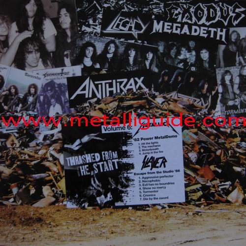 Type Of Vinyl: 6x 1lp Country / Year: ?/01/10/10 Company: None Source / Date: Demos Vol.1; 1986 VIOLENCE demo & 1985 DEATH ANGEL demo Vol.2; 1984 VOIVOD demo & 1983 TORMENTOR demo Vol.3; 1983 OVERKILL demo & 1983 ANTHRAX demo Vol.4; 1985 LEGACY demo & 1984 MEGADETH demo Vol.5; 1986 EXODUS demo & 1987 TERRORIZER demo Vol.6; 1982 METALLICA "power metal" demo & 1986 Slayer "escape from the studios" Matrix: Vol.1; TRASH 01 A - I & TRASH 01 - BI Vol.2; TRASH 02 A - I & TRASH 02 B - I Vol.3; TRASH 03 -A - I & TRASH 03 B - I Vol.4; TRASH 04 A - I & TRAH 04 B - I Vol.5; TRASH 05 A - I & TRASH 05 - B - I Vol.6; TRASH 06 A - I & TRASH 06 B - I Track List: Vol.1; A. Eternal Nightmare, Kill On Command, Bodies On Bodies, Paraplegic B. Trashers, Kill as One, The Ultra Violence Vol.2; A. Condemned To The Gallows, Hell Driver, Live for Violence, Suck Your Bone B. Armies of Hell, Cry War, Satan's Day, Messenger From Burning Hell Vol.3; A. Overkill, The Beast Within, There's No Tomorrow, Death Rider, Feel The Fire B. Across the River, Howling Furies, Soldiers Of Metal, Panic Hellfire, Anthrax Vol.4; A. SAlone In The Dark, Burnt Offerings, Raging Waters, Reign of Terror B. The Skull Beneath The Skin, Mechanix, Last Rites / Loved To Death, Interview Vol.5; A. Seeds of Hate, Pleasures Of The Flesh, Brain Dea B. Corporation Pull-In, Human Prey, Infestation, Ripped To Shreds, Strategic Warheads, After World Obliteration Vol.6; A. Hit The Lights, The Mechanix, Motorbreath, Jump In The Fire B. Aggressive Perfector, Necophobicm, Evil Has No Boundries, Show No Mercy, Tormentor, Crionic, Die By The Sword