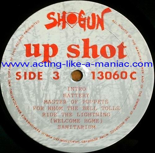 Type Of Vinyl: 2 LP Country / Year: USA/1987 Company: Shogun Records Source / Date: *L'Amours, Brooklyn, USA, 09/04/83 **Nassau Coliseum, Uniondale, USA, 28/04/86 Matrix: Shogun-13060-A & Shogun-13060-B & Shogun-13060-C & Shogun-13060-D Track List: A. Hit The Lights*, The Mechanix*, Phantom Lord*, Jump In The Fire*, Motorbreath* B. No Remorse*, Bass Solo*, Whiplash*, Seek And Destroy* C. Intro**, Battery**, Master Of Puppets**, For Whom The Bell Tolls**, Ride The Lightning**, Welcome Home (Sanitarium)** D. Creeping Death**, Am I Evil ?**, Damage Inc.**