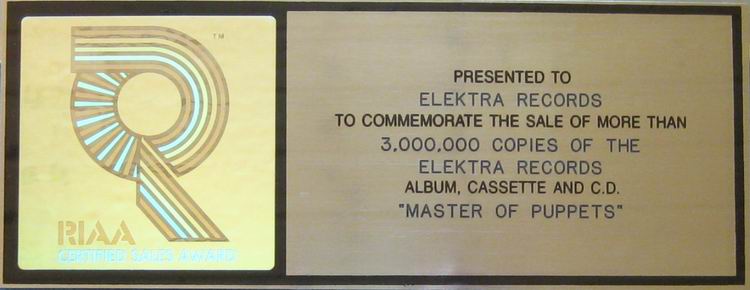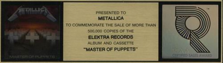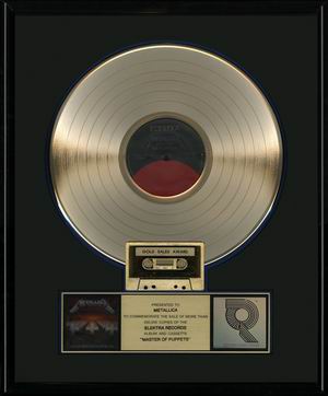 "Master Of Puppets" Gold Sales Award, presented to Metallica!!!