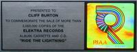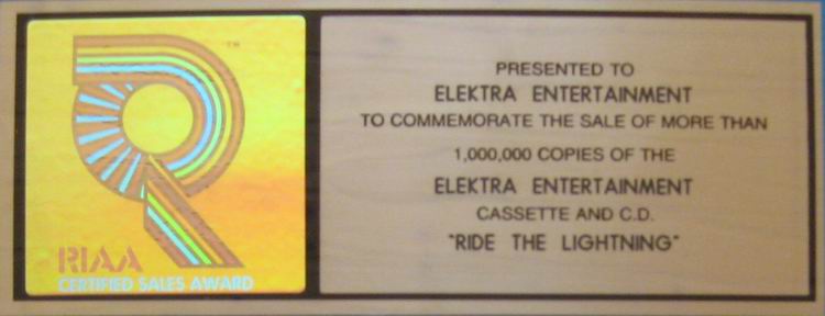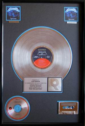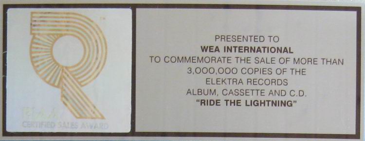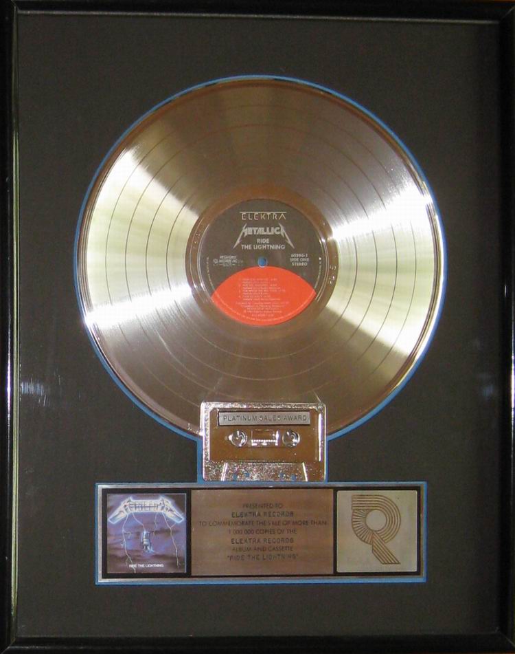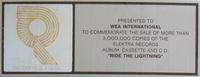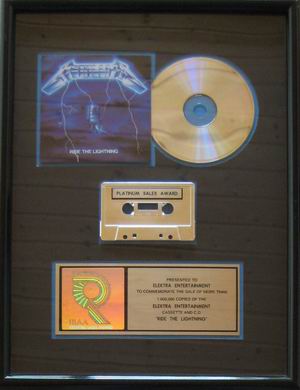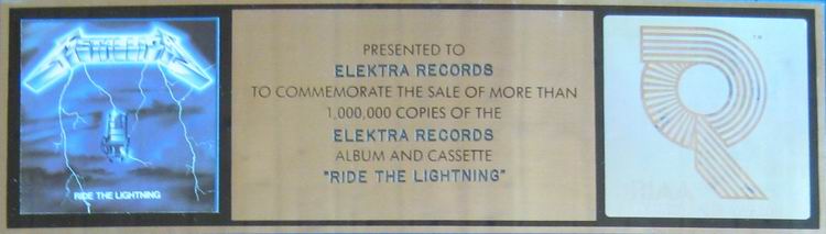 "Ride The Lightning" Platinum Sales Award, presented to Elektra Records!!