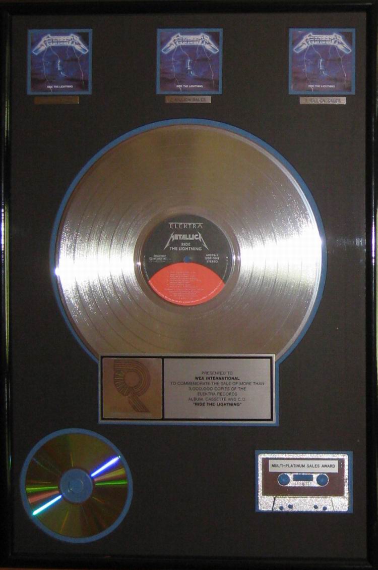 "Ride The Lightning" 3x Multi-Platinum Sales Award, presented to WEA International!