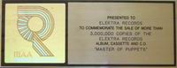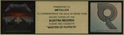 "Master Of Puppets" 3x Multi-Platinum Sales Award, presented to Elektra Records!!