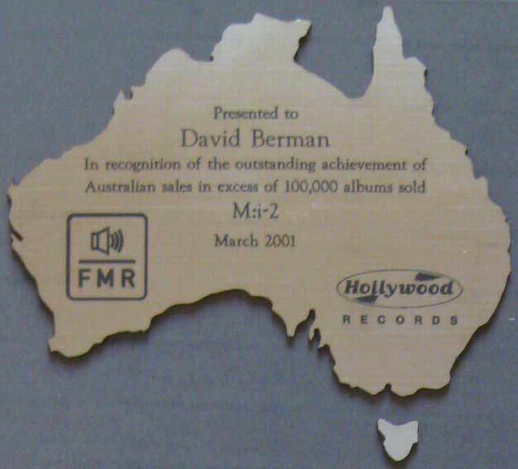 "M:i-2" Platinum Sales Award, presented to David Berman!