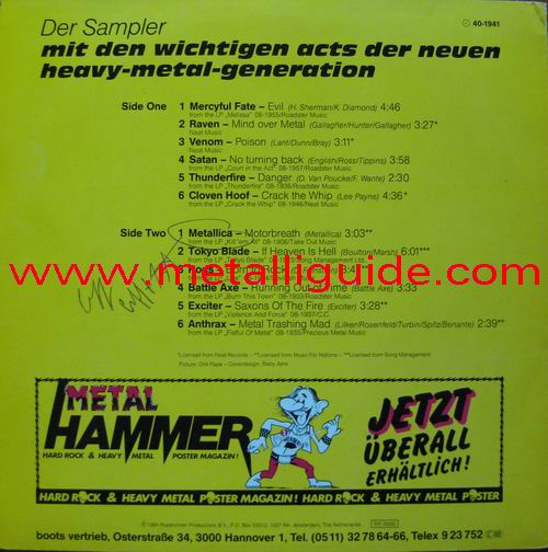 Metal Hammer Sampler - 1LP, signed by Cliff Burton in 1986