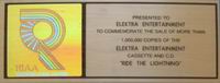 "Ride The Lightning" Platinum Sales Award, presented to Elektra Entertainment!